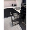 -prowadnice szuflad z hamulcem i cichym domykiem marki Hettich. Prowadnice w szafkach o frontach wyższych niż 15 cm mają dodatkowe podwyższenie z metalowego panelu,